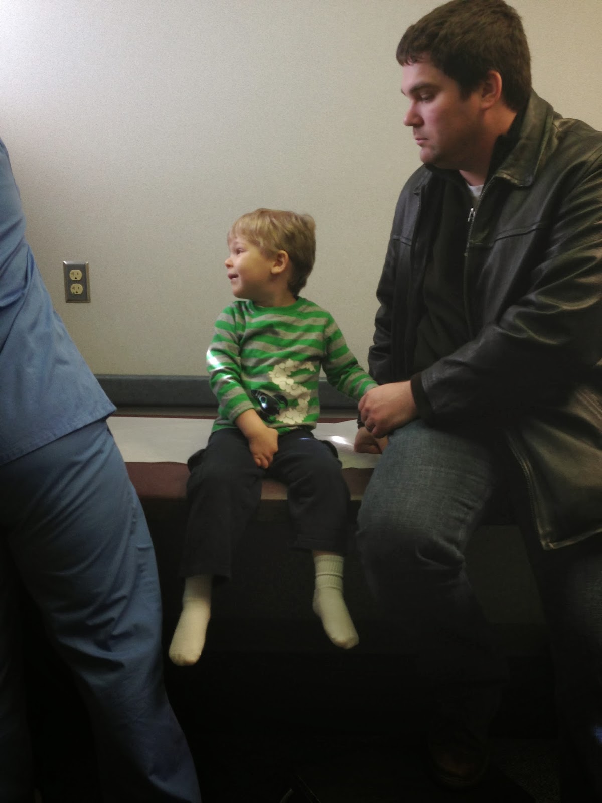 You were most unhappy when you heard the conversation move to flu shots! We are terrible and never got you one, but Dr. Emm highly recommended getting one because it seems to be peaking right now. Neither one of us wanted to do that to you, but we felt it was probably better in the long run. You were extremely unhappy when she poked you and it took awhile to calm you down. But, Daddy got you excited when he mentioned that you were going to get to go with him to get his haircut...and then go to Culver's to see the fishies and eat lunch. There may also have been talks of getting ice cream afterwards :). However, after you left Daddy's haircut, you said you didn't want to go into the "place with the blue roof" (Culver's) and just wanted to get it to go. You seemed a bit run down by this point. Once you got home, Daddy put in a movie since you weren't feeling the best and after you ate, you asked if he could stop it and save it for later because you needed to go rest...clearly, you weren't feeling well!! You took a solid nap and still seemed pretty blah when I got home from work. We snuggled quite a bit and you seemed in good spirits - just not quite up to par. And, you definitely reminded us more than once how you didn't like your shot...I have a feeling we will be hearing about this for quite some time!